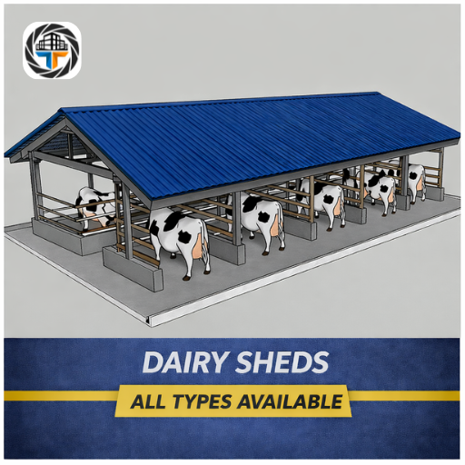 Dairy Sheds are specially designed Pre-Engineered Building (PEB) structures developed to provide a comfortable, hygienic, and well-ventilated environment for dairy cattle. Tohid Enterprises offers durable and cost-effective dairy shed solutions that support efficient dairy operations and animal welfare.